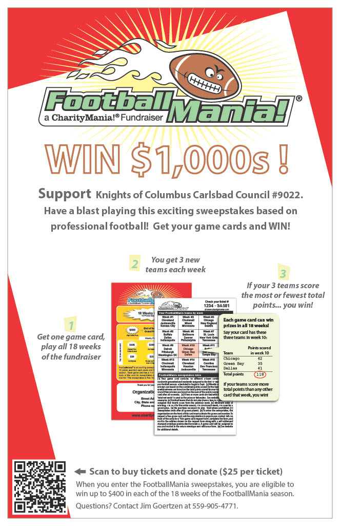 Football-Mania is a fundraiser for our many charities that lasts the entire football season. CLICK HERE to buy your tickets now!